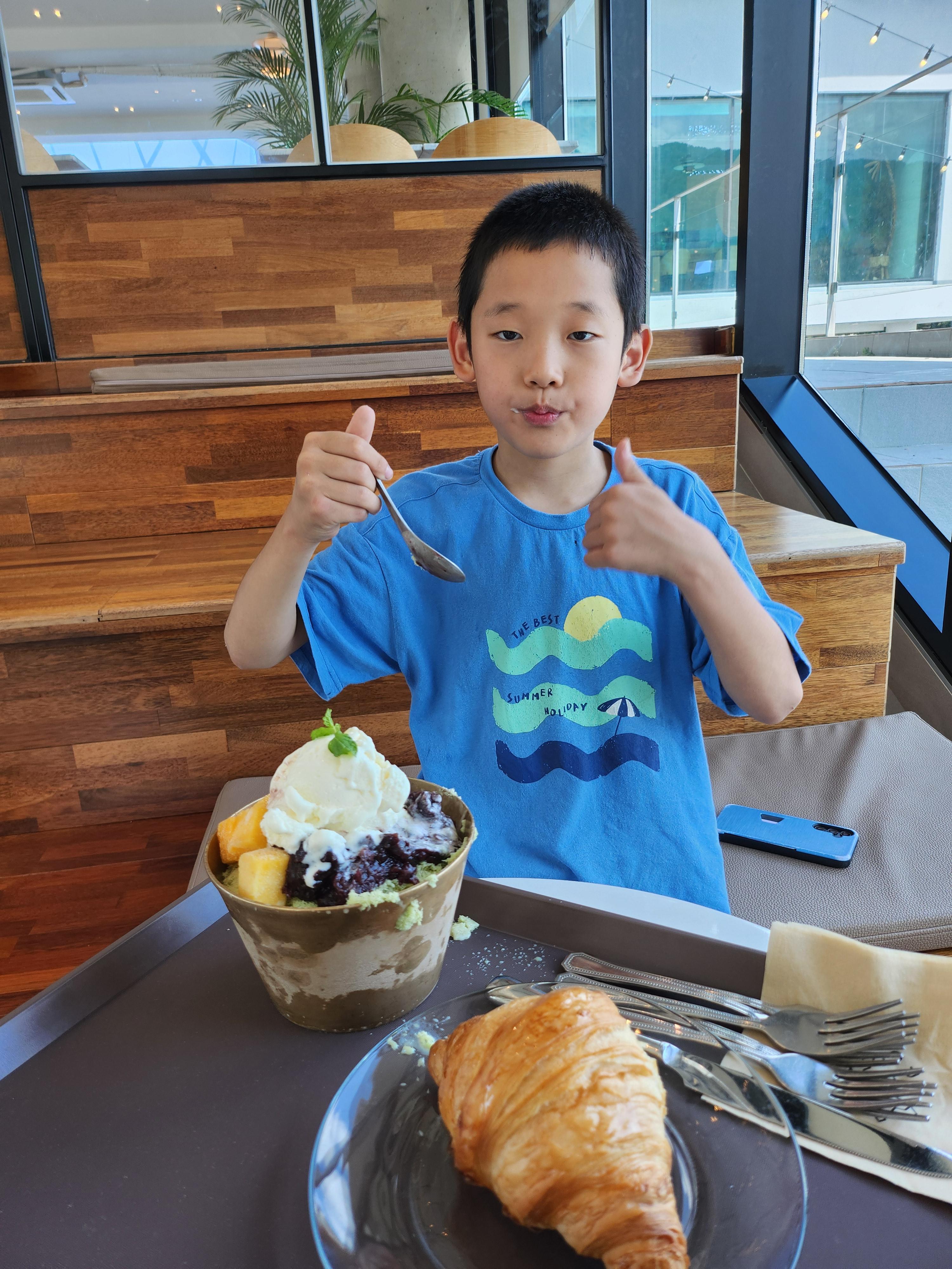 저는 오히려 크루아상에 손이 더 갔는데, 아들은 시원한 빙수에 푹 빠져 거의 혼자 다 먹더군요.