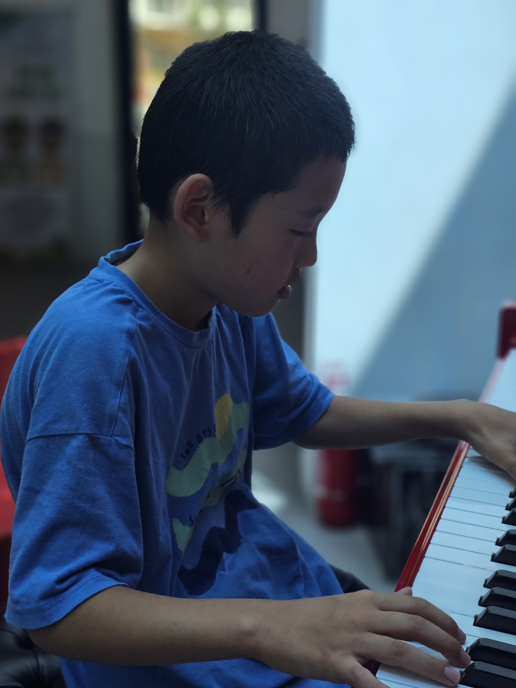 ✔ 입구의 빨간 그랜드 피아노 – 독특한 포토존