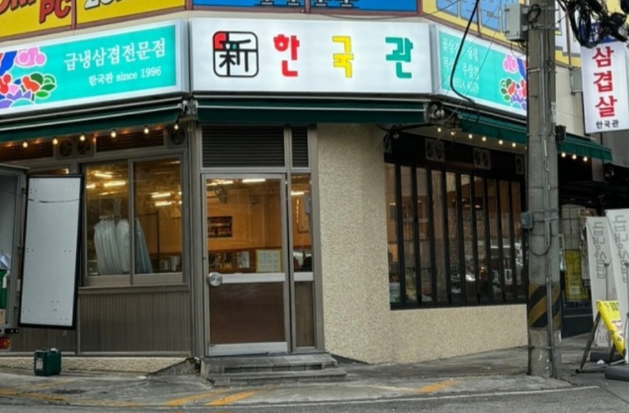 저는 오랜만에 만난 친구네 가족과 함께 저녁 식사를 하고 왔어요. 어디를 갈까 고민하다가, 어릴 적 향수를 불러일으키는 '급냉 삼겹살'을 전문으로 하는 '신한국관'을 찾아갔습니다. 커다란 간판이 멀리서도 한눈에 쏙 들어와 쉽게 찾을 수 있었어요.